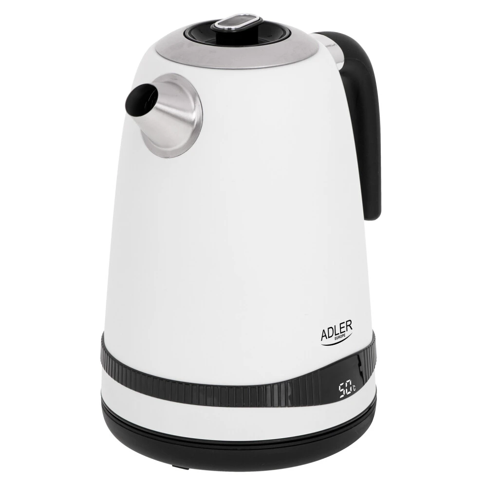 Innovativer Wasserkocher mit LCD-Temperaturanzeige, 7-stufiger Temperaturregelung und Warmhaltefunktion. Im Wassersiedemodus zeigt das LCD-Display die aktuelle Wassertemperatur an und kocht sie auf den gewünschten Wert im Bereich von 40 ° C bis 100 ° C. Im Temperatur-Warmhalte-Modus zeigt das LCD-Display das permanent gewählte Temperaturniveau an, während das Wasser 2 Stunden lang zyklisch erhitzt wird. Durch einfaches Anheben des Wasserkochers von der Basis werden die vorherigen Einstellungen zurückgesetzt. Ein Tonsignal beim Starten und nach dem Kochen von Wasser erinnert Sie daran, Ihr Lieblingsgetränk mit Wasser zu überfluten. Die Möglichkeit, Wasser auf 100 ° C zu kochen und dann die Warmhaltefunktion auf eine Temperatur von 40 ° C einzustellen, erleichtert die schnelle Zubereitung von Milchmischungen für Babys, die auch nachts gefüttert werden sollten. Andere Wassertemperatureinstellungen ermöglichen die Anpassung an jedes Getränk. Der Wasserkocher besteht aus hochwertigem Edelstahl und ist mit einem Kalkschutzfilter und einem Überhitzungsschutz ausgestattet, der eine langfristige Nutzung des Geräts gewährleistet. Für eine einfache Innenreinigung ist der ADLER AD1295 mit ausgestattet