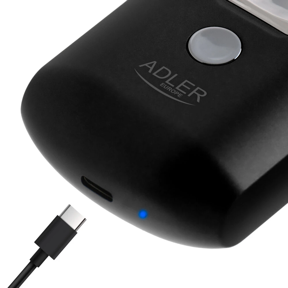Der ADLER AD 2936 Reiserasierer ist eine praktische Lösung, die jeder Mann zu schätzen wissen wird, der Wert auf gutes Aussehen, Komfort und Minimierung der morgendlichen Vorbereitungen für den Start in den Tag legt. Unser Produkt fällt durch sein interessantes Design, seine einfache, aber elegante Linie und seine originelle Farbe auf. Der Reiserasierer passt problemlos in einen Kosmetikbeutel für Männer, eine Reisetasche oder einen Koffer. Das tragbare, drahtlose und leichte Gerät wird sicherlich jeden ansprechen. Es liegt gut in der Hand und der Knopf an einer sichtbaren Stelle startet den Rasierer schnell. Das Gerät ist mit einem 250-mAh-Lithium-Ionen-Akku ausgestattet, der eine längere Nutzung ohne häufiges Aufladen ermöglicht. Aufladen über USB C bedeutet, dass Sie den Akku des Rasierers unter fast allen Bedingungen schnell aufladen können, ohne nach einer zusätzlichen Steckdose suchen zu müssen.