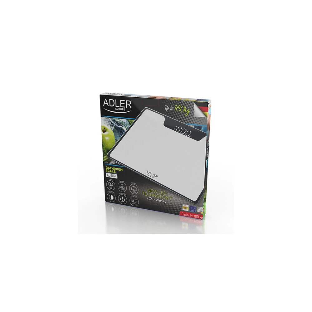 Die Badezimmerwaage AD8174 hat eine Oberfläche aus 6 mm gehärtetem Glas und kann bis zu 180 Kilogramm tragen. Die Messgenauigkeit wird durch 4 Dehnungsmessstreifen gewährleistet. Die Waage verwendet ein hochwertiges LED-Display. Dadurch wird die Lesung kontrastreich und extrem klar. Die Zahlen erscheinen mit Licht auf der schwarzen Oberfläche geätzt.