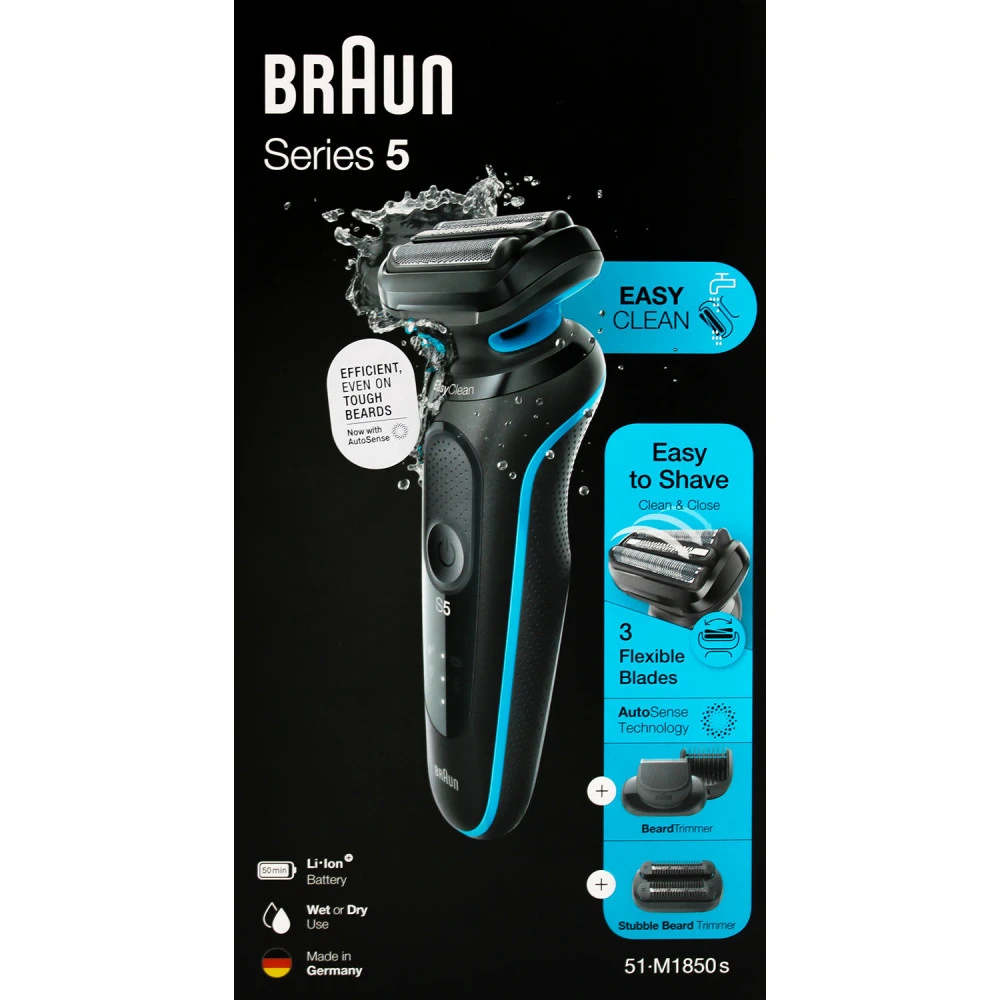 - Lieferung: Braun S5 Rasierer, 4 Bart-Trimmer Aufsätze, EasyClick 3-Tage-Bart-Trimmer-Aufsatz, Reinigungsbürste, SmartPlug (Ladekabel)