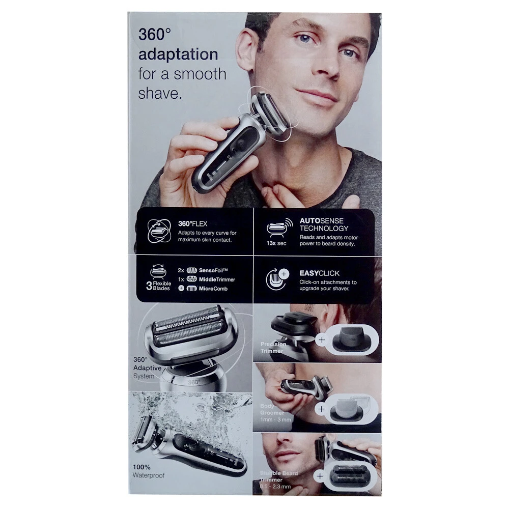 - Lieferumfang: Rasierer, Reise-Etui, 3-Tage-Barttrimmer-Aufsatz 0,5 -2,3 mm, Präzisionstrimmer-Aufsatz, Bodygroomer-Aufsatz 1mm und 3mm, Ladestation, SmartPlug, Reinigungsbürste, Ladestation