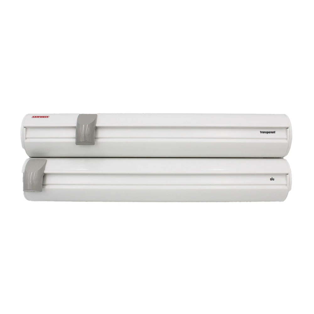 - Der obere Rollenbehälter ist abnehmbar, so dass die Folie dort geschnitten werden kann, wo sie gebraucht wird.