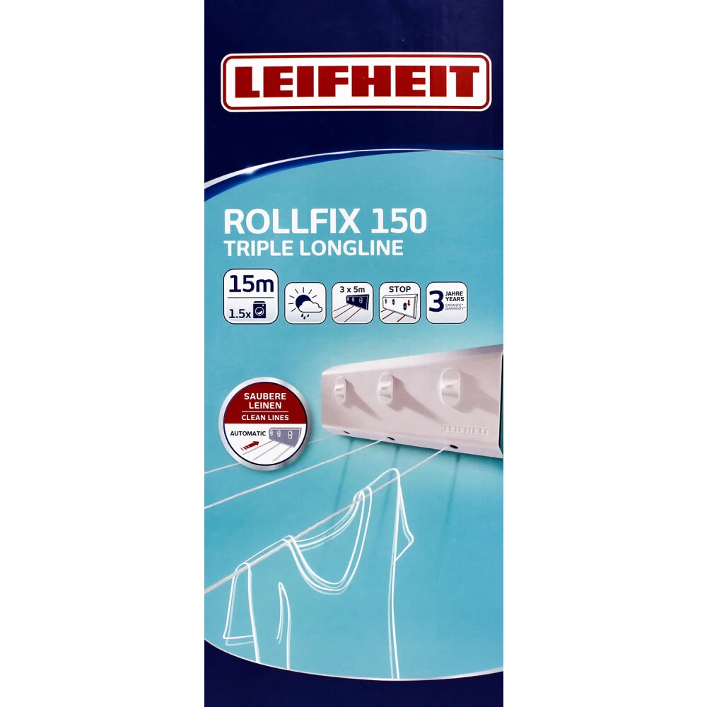 Leifheit 83107 Rollfix 150 Triple Longline Wandwäschetrockner 15 M (3 X 5m)
